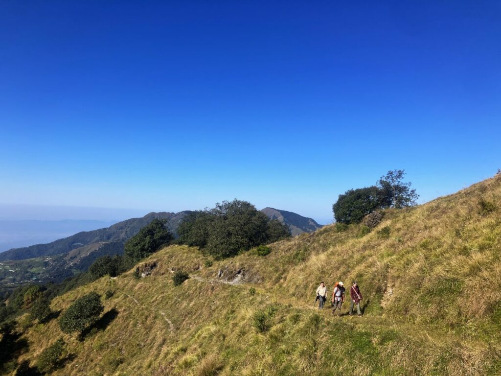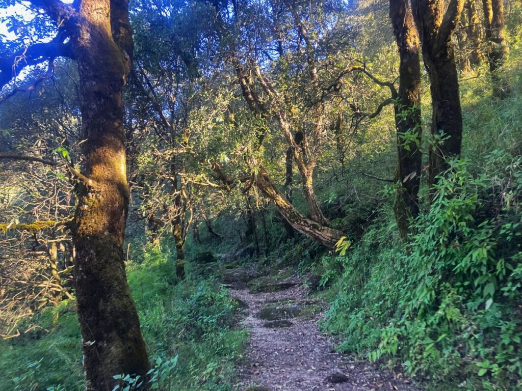 About the Hike – Here is another great experience by from Himalay, this is one of the must do to things in mussoorie Cloud’s end to Jwala Devi hike is located in Western part of Mussoorie, the hike begins from Cloud’s end nestled at an elevation of 6955 ft (2120 meter) descending 427 ft (130 meters) measuring 1.20 km through Clouds end’s private forest will take approximately 20 min to reach the Andheri Entry Gate of “Mussoorie Wildlife Sanctuary” from the Entry gate you can buy the ticket to proceeds the hike, it is best to have a guide to explore the area as can give you information about local flora and fauna and make sure you have a safe and comfortable trip, after getting permits hike proceeds towards top another 1.5 to 2 hours venture through a gradual climb of 3 km surrounded by beautiful Himalayan Oak Forest, amazing meadows covered with flowers and grasses depending on time of the year you are doing this hike, if you want see this forest Lush green with clouds view, July-Aug will be a great time (please note this area will be full of leeches it’s advisable to wear proper shoes with Leech Socks)