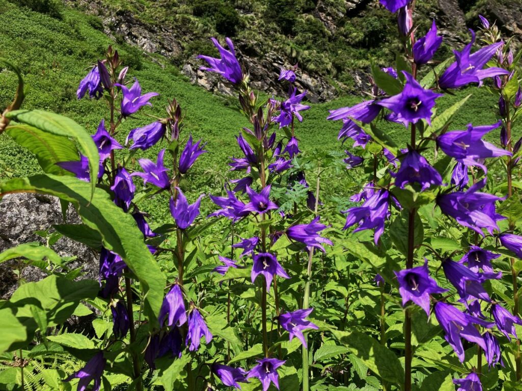 After an hour of hiking, we reached a valley viewpoint. The view was breathtaking—big green meadows with some flowering plants, and towering snow-capped peaks visible on both sides. We walked for another hour, reaching the middle of the valley. Though peak flowering time was still a few weeks away, we saw around 30 species of Himalayan flowers. We climbed a rock to enjoy a 360-degree view, took some photos and videos, and then hiked for another 20 minutes before starting our journey back to Ghangaria.