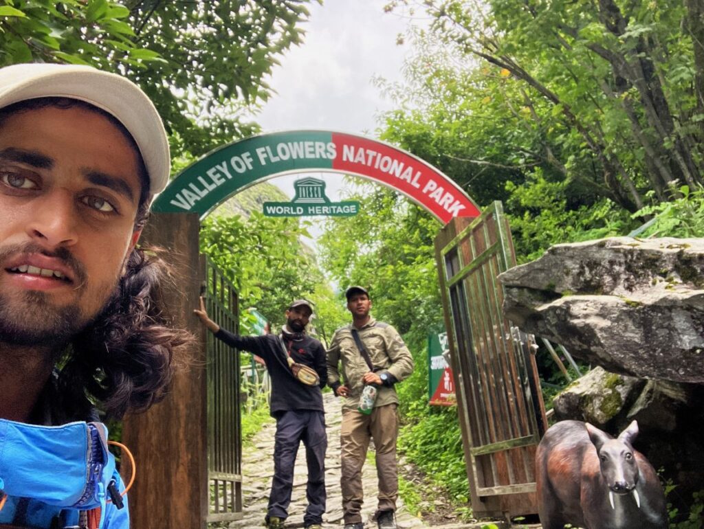 We all started packing our lunch items into one bag and left our other bags at the homestay. We reached the entry point at 8:15 AM, signed the register, got our tickets (200 rupees per person), and proceeded with the hike. Our initial plan was to cook tea and breakfast after hiking a little, but we had to leave our cooking stuff at the entry gate, as it is not allowed inside the park. So, we started hiking without having anything to eat, carrying only some biscuits.
